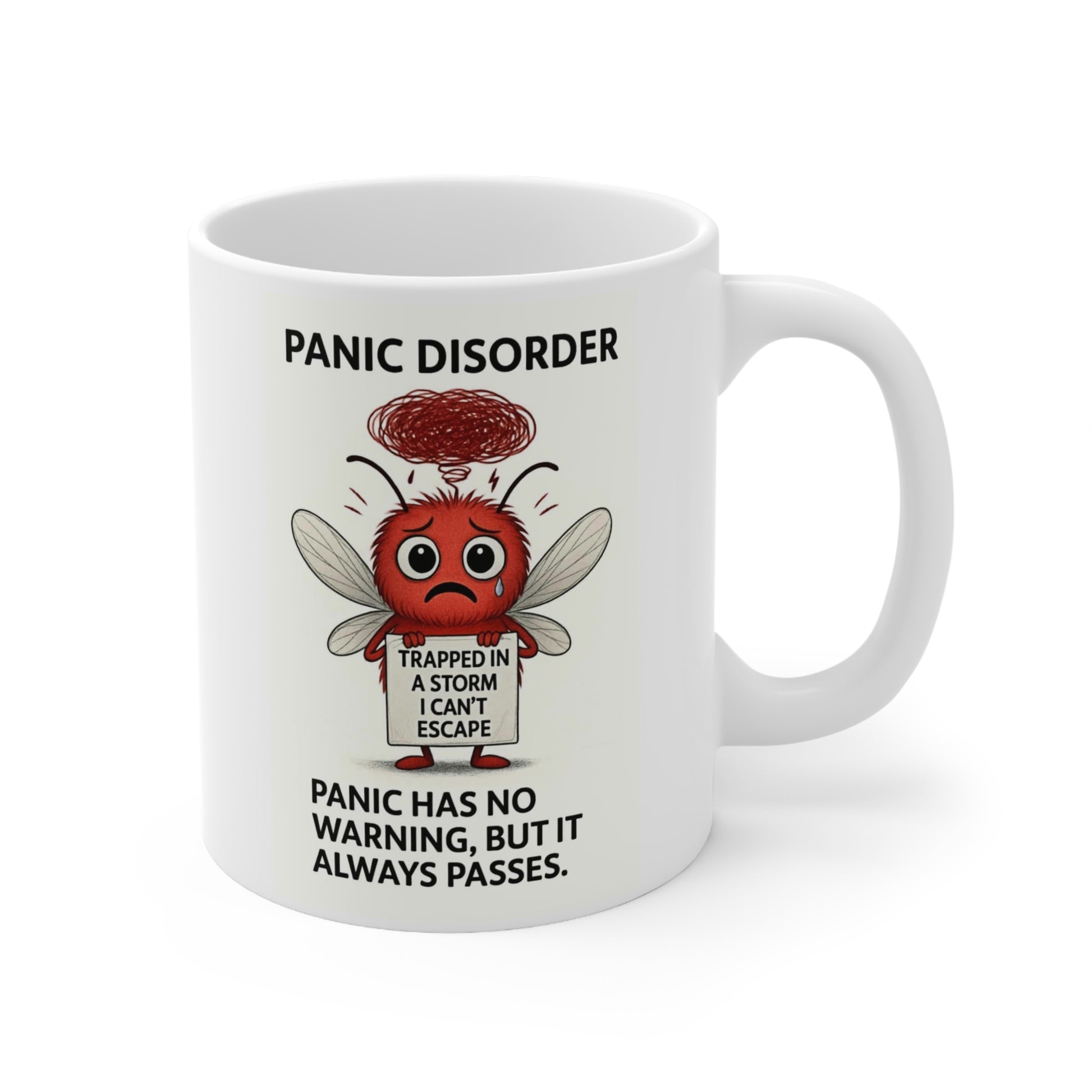 Sip your coffee with Buster, the Storm Mosquito who embodies Panic Disorder β‘π«. Just like panic attacks, Buster can strike without warning β but he reminds us that every surge of fear eventually passes π€οΈ. This mental health awareness mug is more than ceramic β itβs a daily reminder that calm will always return πΏποΈ.