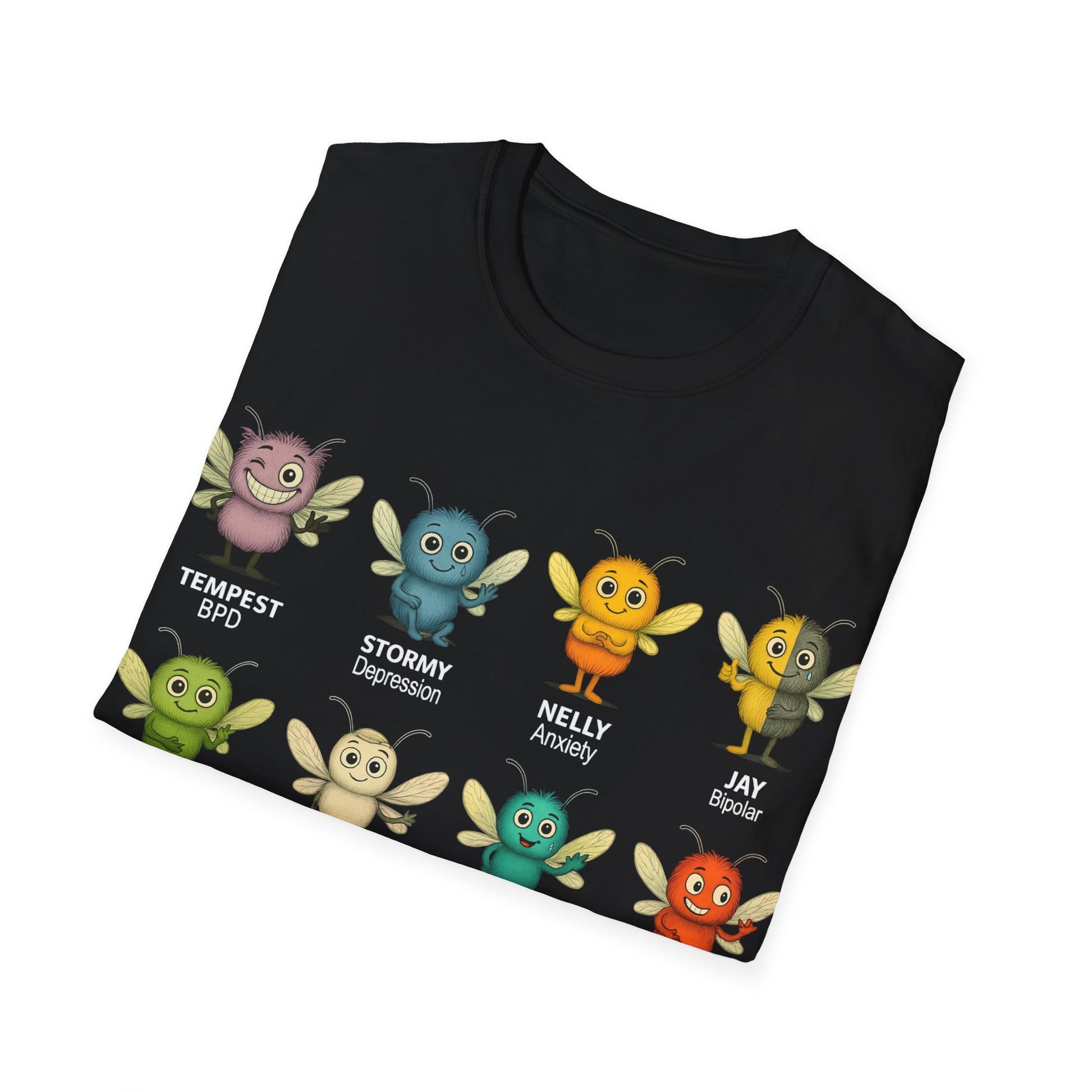 The Storm Mosquitos Collection introduces eight unique characters, each representing a different mental health challenge: Tempest (BPD), Stormy (Depression), Nelly (Anxiety), Jay (Bipolar), Hope (PTSD), Felix (OCD), Echo (Schizophrenia), and Buster (Panic Disorder). Together, they bring important conversations to life through bold designs and meaningful messages, reminding us that mental health struggles are real, but so is resilience. These tees aren’t just clothing—they’re statements of empathy, awareness, and advocacy.