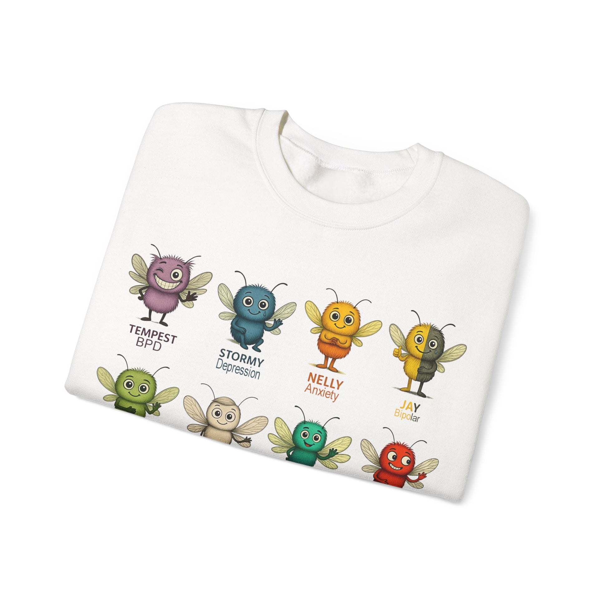 Meet the Storm Mosquitos 🌩️ — a buzzing crew carrying the stories of mental health. Each character represents a different struggle: Anxiety, Depression, BPD, PTSD, OCD, Bipolar Disorder, Panic Disorder, and Schizophrenia. Together, they remind us that storms don’t erase our worth — they reveal our strength 💜.