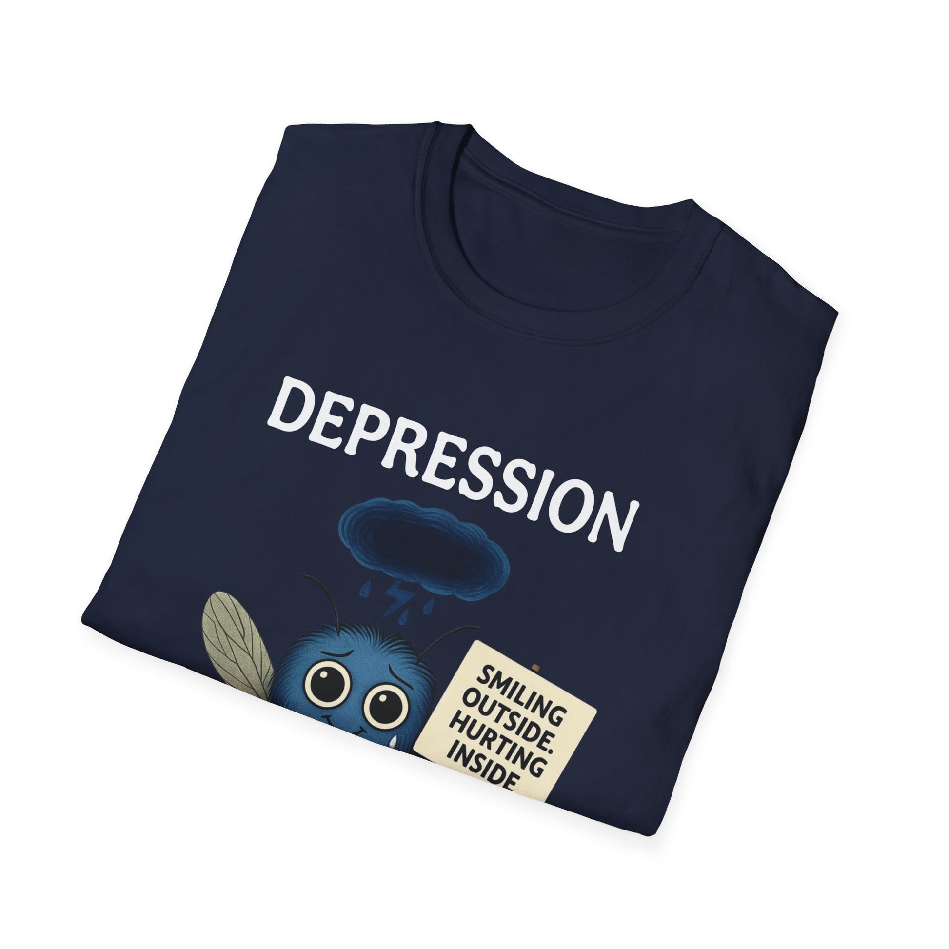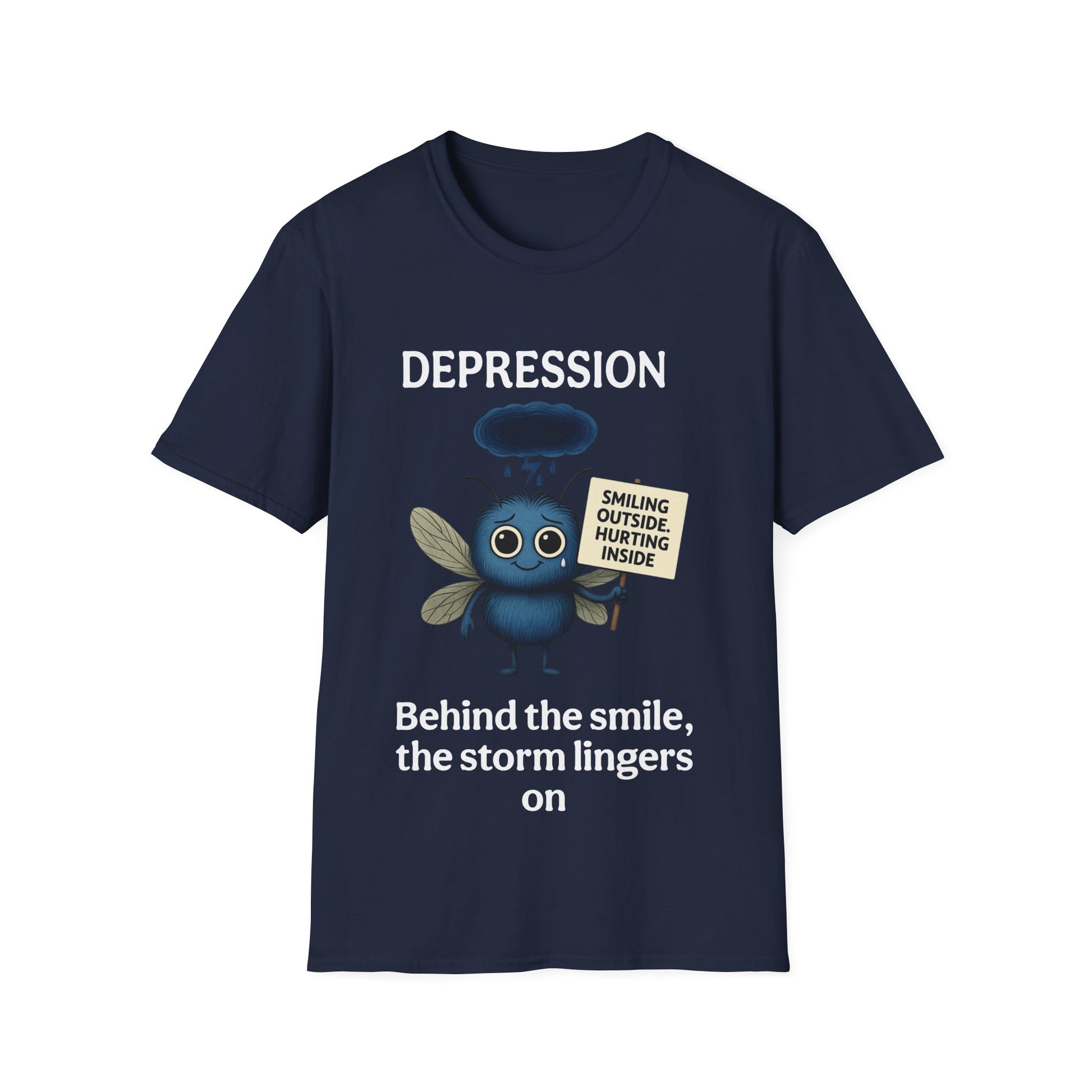 The Depression Awareness T-Shirt shines a light on the hidden struggles behind a smile. Featuring a powerful design with the phrase “Smiling Outside, Hurting Inside” and “Behind the smile, the storm lingers,” this tee is more than clothing—it’s a voice for mental health awareness and a step toward breaking stigma. Wear it to spark conversations, show support, or remind yourself and others that no one fights depression alone.